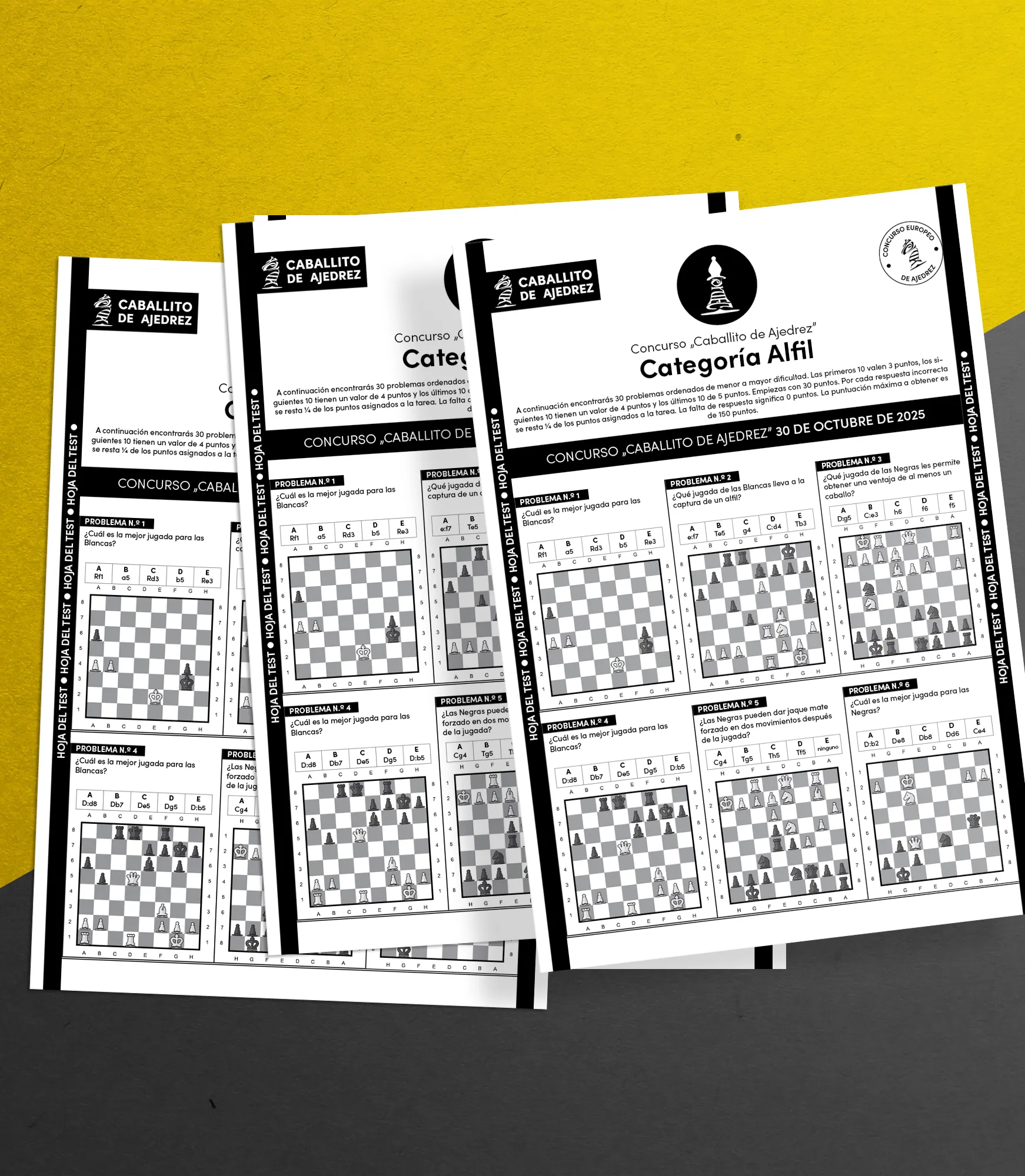 En las tarjetas de problemas hay 30 tareas de ajedrez con diferentes niveles de dificultad, adaptadas a la edad y el nivel del participante. Un mensajero entregará estas tarjetas a la escuela unos días antes de la fecha límite.